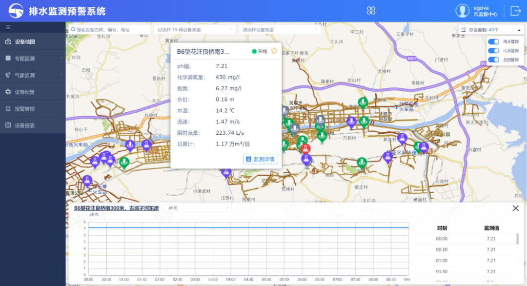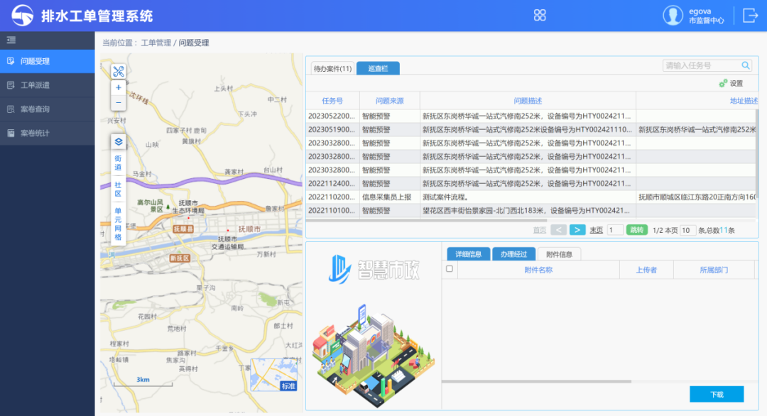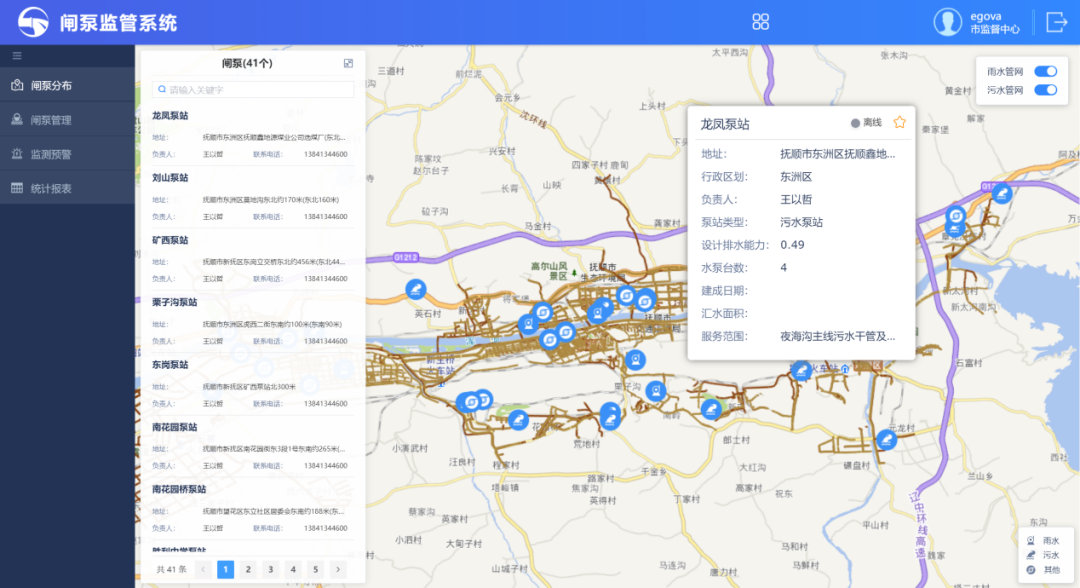 抚顺市排水系统管理平台的建设对于抚顺市排水系统的监管带来了显著的成效: