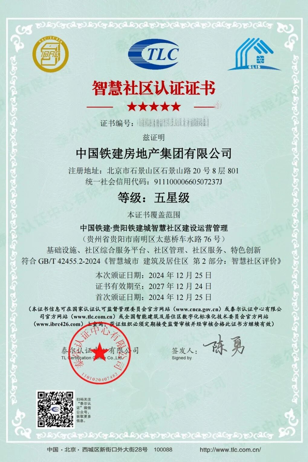 中国铁建房地产集团贵阳铁建城评为首个五星级智慧社区